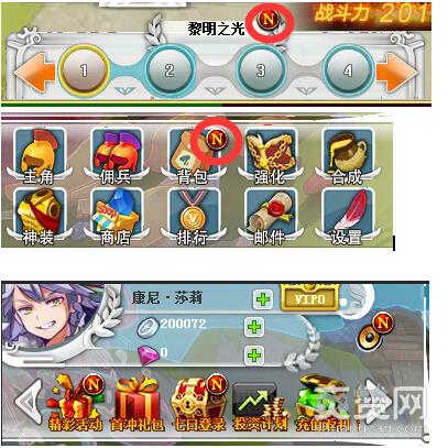 那好吧,有人就要问了,战斗自己打响了,我要干什么?好问题!战斗无需操心,需要操心的是:如何将战斗获得的资源合理分配到不同的主角职业和佣兵培养上,从而在战斗中获得更多的资源。这句话很长,让我们把他简化:合理使用资源!以获得更多资源!《战争少女》里面的角色和佣兵完全会自己战斗,战斗不用我操心了,可是我的神之右手寂寞啊。他需要展示他的存在啊。他们做什么呢?“哪里有N,点哪里!妈妈再也不用操心我不会玩战争少女了!”在每一个可以使用和成长的地方,我们都会用N来告诉你,这里可以升级了,这里可以成长了。请记住,哪里有N,点哪里!