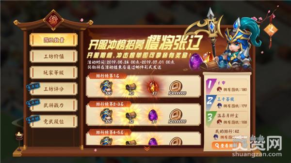 此外,在《颤抖吧三国》新服中还将开启开服冲榜活动。开服前7天将对玩家的图纸数量、工坊价值、角色等级、工坊评分、武将战力、竞武段位来进行排名,排名前二十的玩家可获得稀有橙色武将张辽碎片和海量铜币与各种珍稀材料,排名越靠前的玩家获得奖励也会更加丰厚。