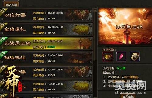 此外,在923yx《灭神》的决战风云碑中大家还需要特别注意的是,在战场中死亡将不会掉落装备,所以大家可以放心的在决战风云碑中一展身手!究竟谁将是这一届的卫冕之王呢?快来923yx《灭神》决战风云碑闪耀出自己的光芒吧!
