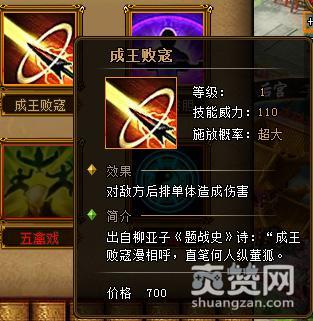 刘邦的强大并不是体现在他的成长上面,而是我们为刘邦搭配的暗金神技"成王败寇"。一个强大的单体对敌方后排武将造成伤害的神技能。他的一级威力就是110,而且技能几率是超大的哟,每一级的技能成长威力是25。比同级的单体神技能“千里单骑”威力超出100多。