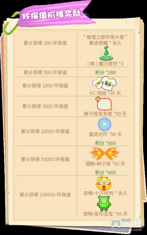 活动期间,只要环保值累计达到指定数值,即可领取对应奖励,每种奖励只能领取一次。