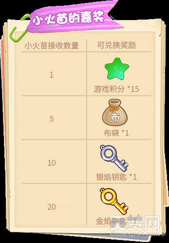 在活动期间,接收“小火苗”将翻倍计算“小火苗”道具勋章,且接收小火苗,可进行兑换指定奖励,兑换不限次数,但会消耗小火苗的累计数量。
