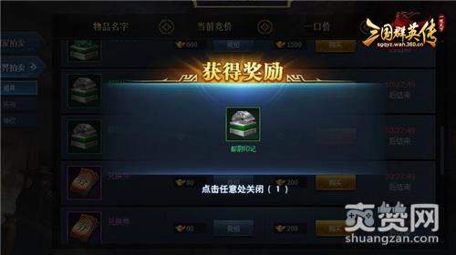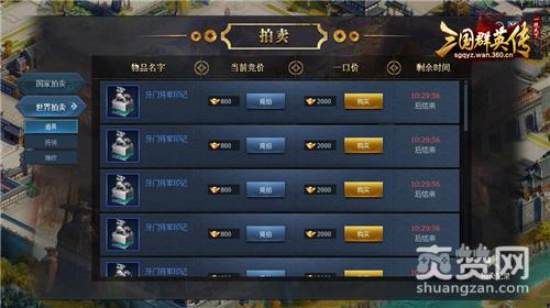 官印提升需要使用印记,在【拍卖】系统中,玩家可以使用元宝来购买各种印记。左侧记录了国家拍卖以及世界拍卖的物品,一般来说当前国家若是没有东西可以卖我们就会到世界窗口淘淘宝。世界拍卖又划分为道具、将领、神纹,而官印印记恰好在道具一项中,点击此项后玩家可以根据左侧名称找出自己需要使用的官印材料。价格分为“当前竞价”和“一口价”,当前竞价售价较低,可尝试购入,一口价的价格有时候是竞价的一倍之多,所以建议玩家尝试竞价后再购买。购买后所需印记后,就可以到官印系统中进行使用了。