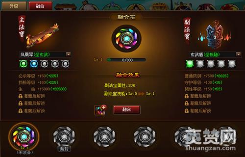 如果想要提升法宝融合后的效果,则需要先提升融合石的等级,融合石等级的提升可增加副法宝的融合度,融合度越高发挥副法宝的属性与技能等级也会越多。融合石的升级则需要消耗融合精华,经验满时需突破方可达到下一级。融合石升级所需的融合精华,可以通过道源商店购买获得,价格为50道源或者5元宝1个。当然如果大家觉得融合后效果不佳,也可以花费50元宝,解除2个法宝的融合关系,解除后融合石的等级不会发生变化。