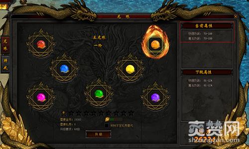 玩家可点击界面下方的神炉按钮打开龙珠界面,共有7颗龙珠可进行培养,开启顺序依次为火龙珠、土龙珠、浊龙珠、木龙珠、金龙珠、水龙珠、蛟龙珠。火龙珠-增加攻击属性;土龙珠-增加物理防御、魔法防御属性;水龙珠-增加内功防御率、内功值、内功恢复值属性;金龙珠-增加内功最小攻击、内功最大攻击属性;浊龙珠-增加暴击率、暴击伤害属性;木龙珠-增加命中值、攻击、防御、生命、魔法多种属性;蛟龙珠-增加内功防御率、内功值属性。