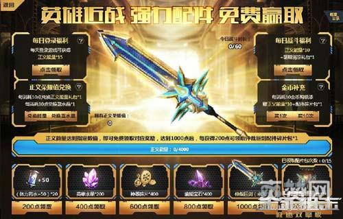 1、每日登录福利,活动期间,每天登录游戏,可获得正义能量*15;