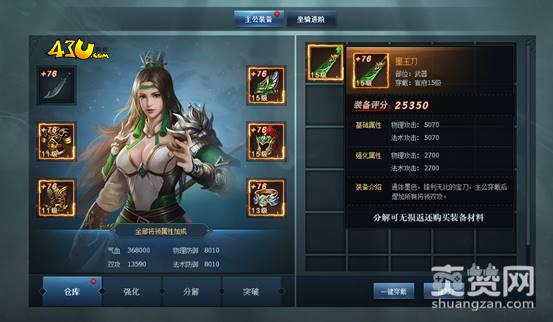 最后就是装备突破,在游戏内,还可以将橙色品质的装备突破至超强的红色品质,大幅度提升装备属性。橙装突破需要消耗道具血晶石。红装还有额外的套装效果喔!
