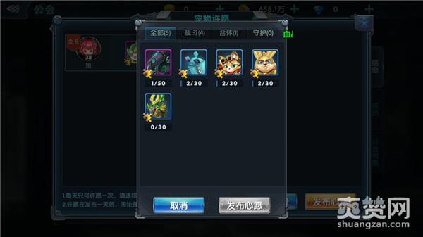 在公会系统中,玩家还可以在宠物许愿功能中发布自己的心愿,每天有一次机会。选择想要的战宠碎片后就可以发布心愿,每发布一次心愿需要消耗30的公会币,最后值得注意的是许愿在发布一天后,无论满足与否都将清除。为了提高心愿的完成度,小编还是推荐大家多许一些能够完成的愿望,以免浪费资源。