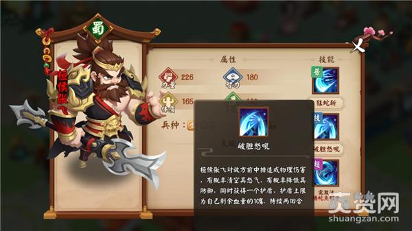 技能方面也是一反常规,虽然在伤害层面上降低了很多,但是新增的减怒气机制,却十分的有战略意义。由此可以看出恒候张飞的定位不在于输出,而在于前排坦度与自身所带来的软性控制,怒气技破胆怒吼更是证明了这一点。减怒气减防御的双减机制再搭配自身提供的护盾效果,对于敌方的输出能力是一个重大的打击,在配速得当的情况下甚至可以令人对方完全丧失作战能力,可谓是战斗中的一个大杀器。