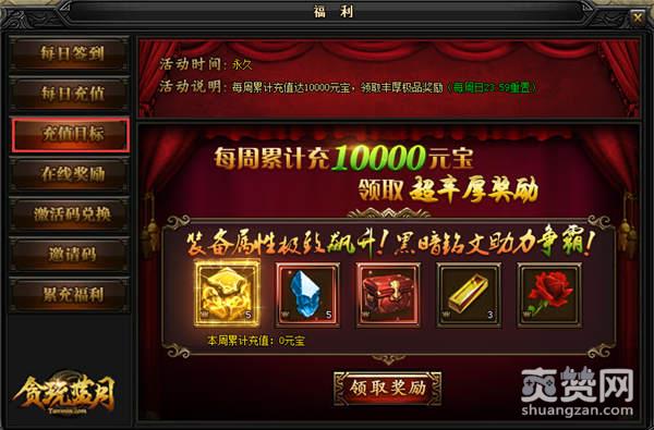 福利大厅新增“充值目标”,vip1以上的玩家可开启福利大厅中的“充值目标”活动,每周累计充值达10000元宝,即可领取丰厚奖励!和古仔一起定下一个小目标吧~