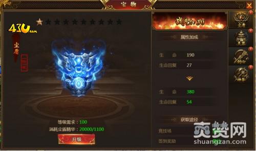1、尘盾:100级可激活,可增加角色生命和生命回复;升级需要消耗尘盾精华,主要通过竞技场获得。