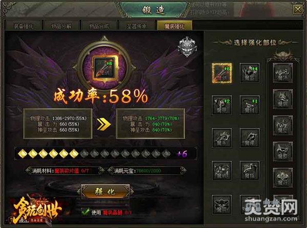 锻造-物品分解中新增魔装分解,分解可获得魔装碎片,使用魔装碎片可增加魔装精华,可用于魔装部位强化。