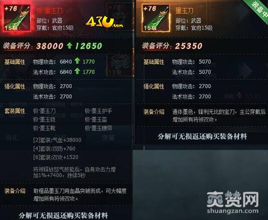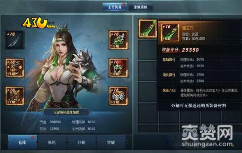 在游戏内,还可以将橙色品质的装备突破至超强的红色品质,大幅度提升装备属性。橙装突破需要消耗道具血晶石。红装还有额外的套装效果喔!.