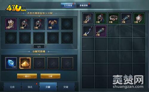 而且玩家们可以将自己用不上的装备进行分解,获得装备强化石。高品质的装备分解更有可能获得珍贵的装备精华,装备精华可用于商店中兑换紫装、橙装。