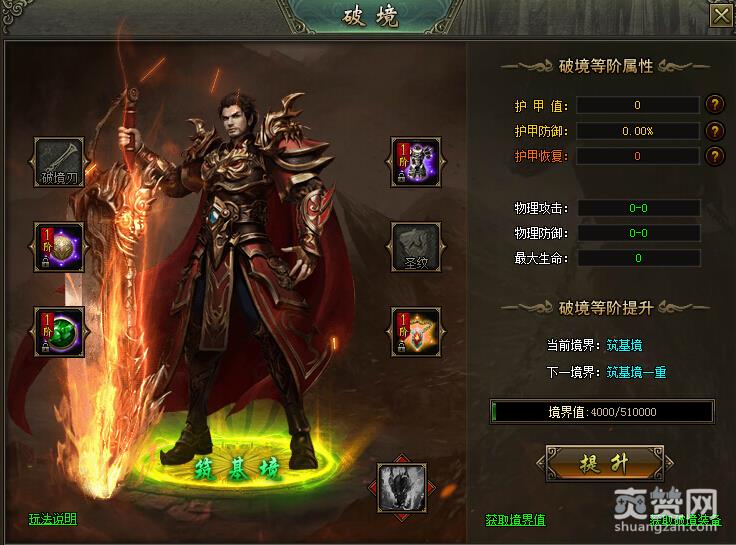 2.破境装备:分为1-8阶,普通、极品、传说、完美品质,每阶装备有穿戴条件,需要破镜提升到对应的等阶。