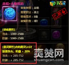 升级器灵等级,可为对应的妖器提供“攻、防基础属性”加成。