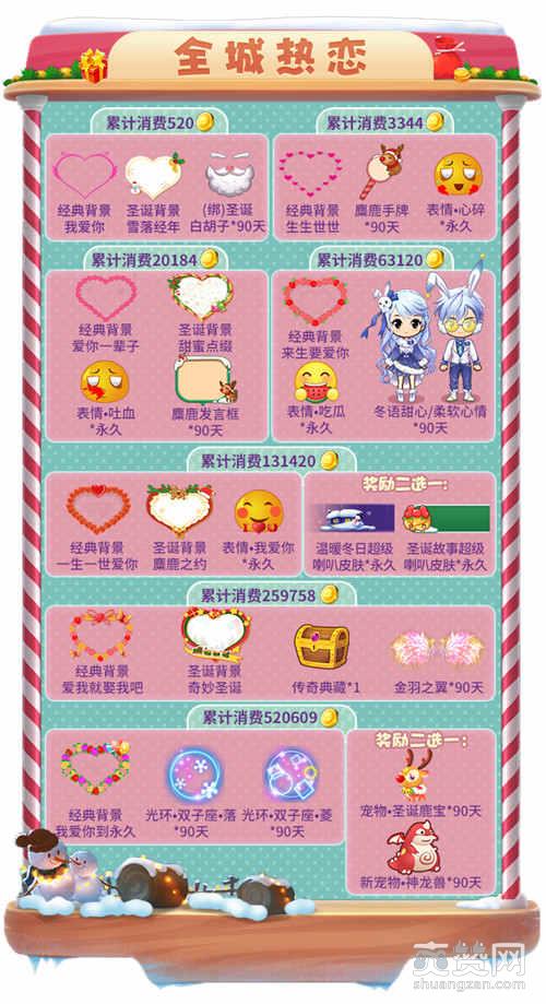 活动期间,接收以下“圣诞道具”会获得“圣诞积分”: