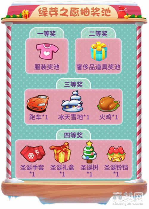 活动期间,魔法翻牌新增以下奖励:圣诞礼物、鸡你太美·帽子*90天、迷糊眼镜、魅紫之羽/酷紫之影、奔驰、魔力音符*99、魔力音符*999、魔力音符*9999、香槟塔、惊喜福袋、许愿宝袋、乔巴帽、猪猪帽、折光之翼、花轿登场动画、蔚蓝之翼、爱吻卡、摩羯座发言框、守护星光环。