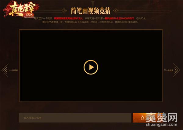 每天显示一个视频,根据视频线索竞猜全新代言人。若是你猜中,那你就幸运啦,因为很有机会暴富哦!小编从每天猜中的玩家中随机抽取10名送16666传奇币,但是总共50名。所以大家一定要好好研究,这位代言人到底是何方神圣。每天可免费竞猜一次,充值100元以上可再获得一次机会,总共两次机会。所以想清楚再下手,16666传奇币就是你的了。