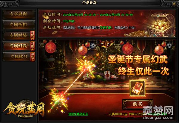 我们经常看到一位游戏角色,往往就是他身穿的装备,第二就是他的专属称号了。所以,这次《贪玩蓝月》给大家准备了“圣诞交响曲”称号哦。带上这个头衔,你就是圣诞节最帅的仔。更有累计充值1000元宝,返利比例最高可达50%的“专享返利”活动。同时,将开放大量珍贵物品的售卖,超低折扣盛情回馈的专属折扣活动。