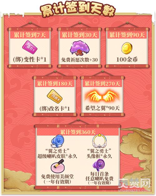 当您许下任意一次愿望之后,即可在2020年1月1日到2020年12月31日期间,根据您累积签到的天数给予你奖励,补签可计。