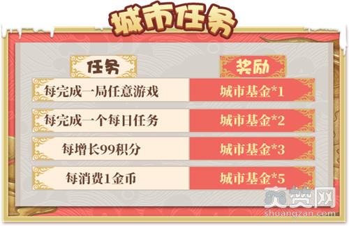 1. 通过“每完成一局任意游戏”任务,每日最多可获得10城市基金;