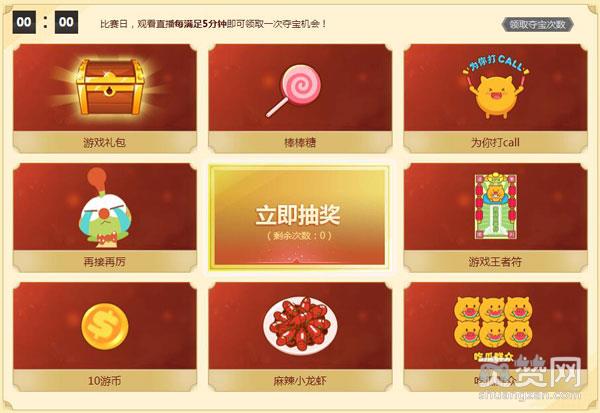 比赛直播当然有福利助阵!首先要介绍的是大家都熟悉的“夺宝抽奖”活动!
