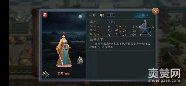 不仅如此,小乔还是游戏中少有的能为队友增加统率的辅助角色,相比起姜维这类只能够为自己增加统率的武将,小乔的作用也明显更加突出,是主打统率值队伍的必备万金油辅助!