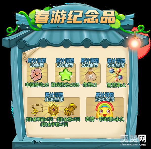 当金币消费达标,还可以领取对应“春游纪念品”!