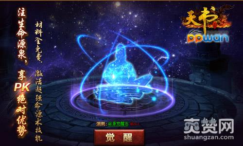 血盾系统的第三大子系统护盾,不仅可以让玩家在ppwan《天书世界》中PK占有绝对的优势,还可以让玩家PK更加任性,因为守护盾带有特殊重生诅咒技能。只要一颗护盾解封石就可开启守护盾哦!此外,在ppwan《天书世界》中,消耗一颗命源觉醒石还可以觉醒命源系统,激活超强命源术技能,享PK绝对优势!