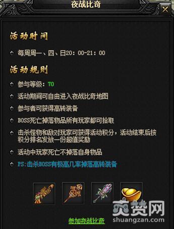 若想参与43u《烈斩》中的夜战比奇活动,首先等级得先达到70级。活动在每周一、四、日晚上20:00-21:00开启,开启时右侧有开启活动提示,点击超链接或者小飞鞋,飞到活动NPC身边并且打开活动界面,点击参加夜战比奇链接即可进入活动场景。活动期间可自由进入夜战比奇地图。