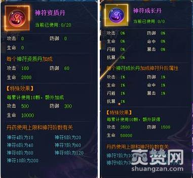 随着神符阶数的提升,玩家可使用的资质、神符丹的数量也会增加。