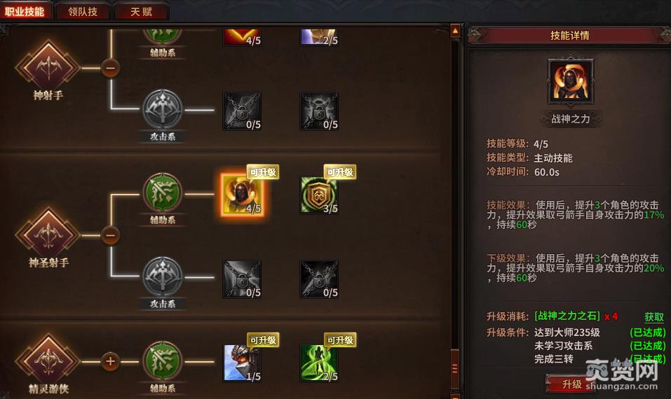 战神之力——BUFF技能,己方3人百分百攻击力提升,效果取决于自身攻击力