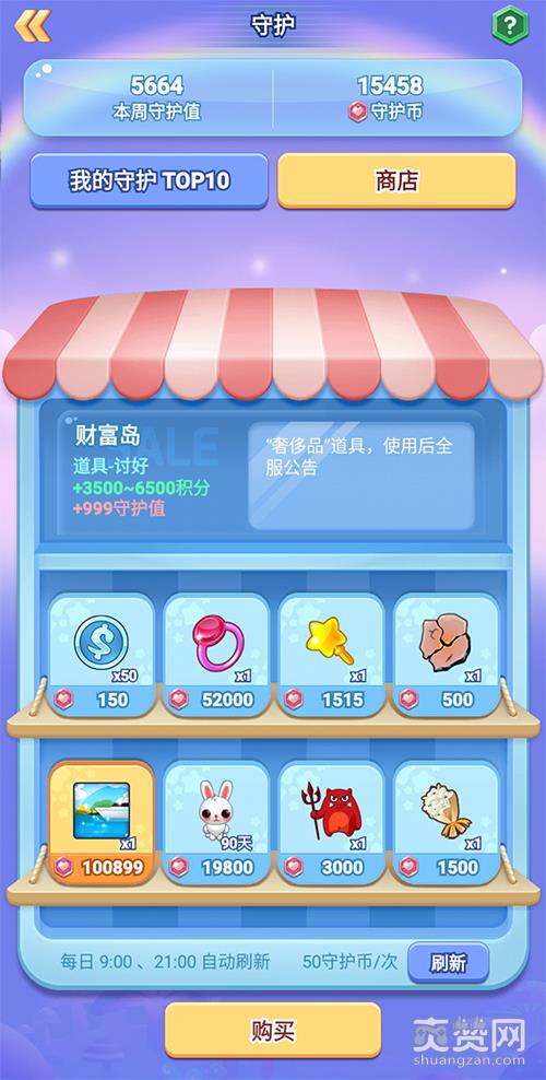 “守护商店”中会展示8种商品,每种物品仅限购买1次,在每天09:00和21:00将自动刷新“守护商店”并更新8种商品。如果您想购买更多商品,也可以选择手动刷新(50守护币/次,不限次数)。
