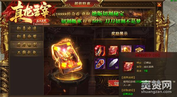 铂金特权效果:角色每天首次死亡不掉落装备,且背包界面可远程开启回收,另外每天还可以免费领取10W元宝和5000威望。