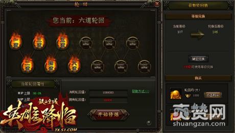 转生,因为刚开的新区,前7天是有开服等级竞技活动的,7天之内达到相应的转生,系统就会送福利,让人比较关注的就是6转送的5转衣服和7转送的7转武器。小编个人认为,7天之内达到7转还是比较划算的,所以,花点小钱,确保自己在7天之内能拿到7转的武器和5转的衣服。换而言之,花相等的钱去选择寻宝,不一定能搞到这两个装备。7转之后,建议就没必要再去花钱进行转生了,当然,土豪请绕道,自便。升级的话,个人玩法是升级到108级,也就是满级再选择降级,升到108级的时候,经验条最多可以达到200%,如果你想稳住108级,你可以放心大胆的先降级,当经验条达到108级的55%以上的时候,哪怕再降一级是依旧可以保持在108级的。一次降级可获得的转生修为是1580万。两次降级就相当于是300RMB,此性价比还是比较高的。