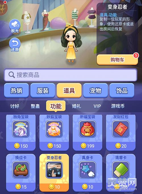 最后再介绍一款功能卡:变身忍者!可以将自己变成房间里面的另一位玩家。无论是相貌,穿着,名字,都会完美复刻!所以很多时候玩家们会利用这个道具来玩一些特别的游戏,比如让某玩家进入房间,猜猜谁才是TA的真正伴侣,颇有点唐伯虎点秋香的赶脚!