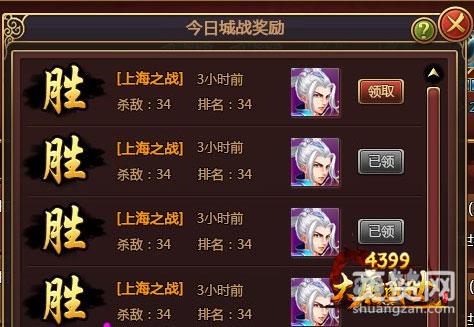 当城战结束后,则会提示“城战奖励”,如下图所示: