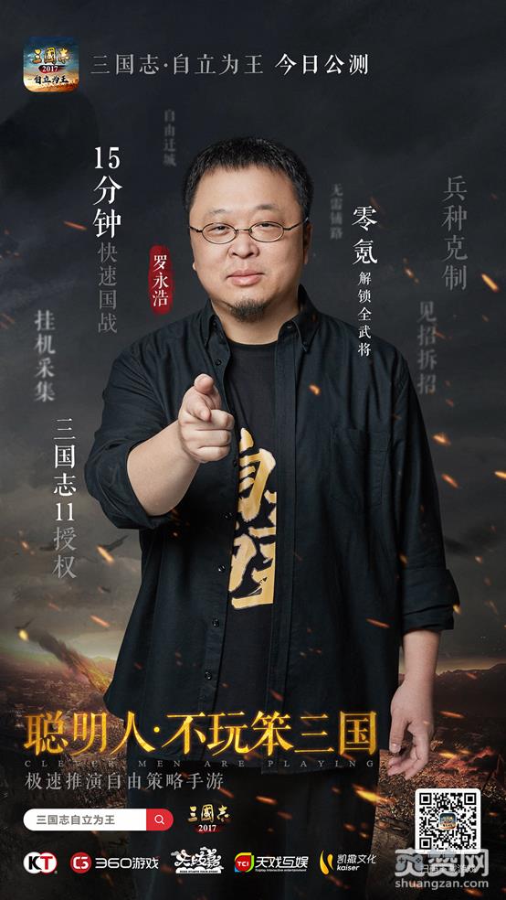 新时代开启!由光荣特库摩正版授权,360游戏发行的《三国志2017》手游全新资料片“自立为王”今日正式上线,并正式官宣罗永浩担任游戏的“首席推荐官”,这也是罗老师首次涉足游戏领域,向众多喜欢策略游戏的玩家,推荐这款基于三国志系列最经典作品之一《三国志11》改编制作的三国策略游戏。