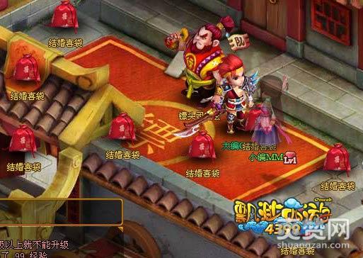 完成送请柬的任务后就可以去成亲了,喜娘会将成亲的情侣传送入结婚的专用地图,在传送使者处完成任务就可以去找地图上方的喜娘成亲了。