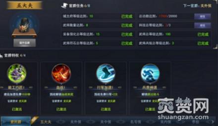 玩家们在游戏中可以升级自己的官爵,解锁不同的特权,官爵等级越高,特权解锁的越多,官爵解锁条件全部达成后可提升官爵,官爵不同,完成的条件也不同。官爵特权激活需要消耗对应道具。