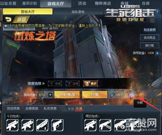 《4399生死狙击》全新冒险之旅来袭,试炼之塔限时开启!五层爬塔关卡,五只强大的BOSS,等你来挑战!别忘了,获得的小型能量槽可以在活动限时商店中兑换道具哦!