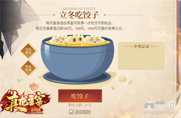 另外转眼间立冬已至,在小编的家乡,立冬这天要吃饺子,不知道兄弟们的家乡有什么风俗呢?为了陪伴兄弟们度过一个暖心的冬天,《真龙主宰》也准备了精彩的立冬活动。