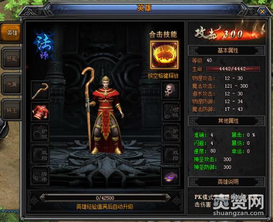 2.英雄会随着玩家打怪和使用英雄经验丹提升等级和转生