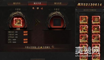 包括神装的升阶升星、神装兑换以及神装分解,分解可100%返还材料。穿戴神装可极大提升属性,集齐一套屠龙或战龙神装还会获得额外的炫酷外显。