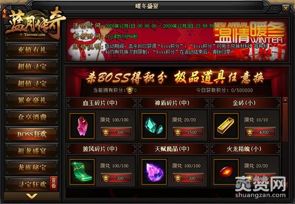 活动期间内,玩家击杀BOSS可以获得由战神授予的“boss积分”,“boss积分”可用于兑换碎片等多种材料,每种材料均有兑换次数限制。“boss积分”在活动结束后,清除归零,记得及时兑换使用哦。