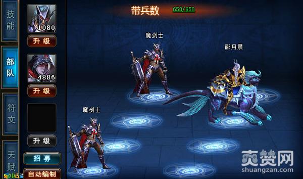 因为不同兵种属性有所不同,所以选择出战的兵种时除了战斗力之外,还要充分考虑敌人的特性。像是魔骑士,拥有坚固的盔甲,防御属性高,所以更适合去对抗伤害高的魔法类型的敌人。玩家可以直接通过战斗-部队界面调整人物和部队、英灵、子女的相对位置。—次可以放置—种士兵在阵型上,阵型上的士兵可自动补充数量,前提是拥有足够的招募士兵人数。如果战斗之后发现士兵人数不足,可以按招募按钮回到前面所提的招募面板补充兵力