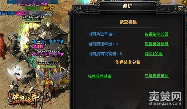 祝福油是一种神奇药水,有一定几率能提升手中武器的幸运值,玩家可祝福角色武器,也可祝福英雄武器。武器的初始祝福值为0。当武器的幸运值越高时,伤害也越高。而当人物幸运值达到9时,每次攻击都能获得极大的伤害。祝福油可以到商城内去购买,打BOSS时也会有机会掉落。