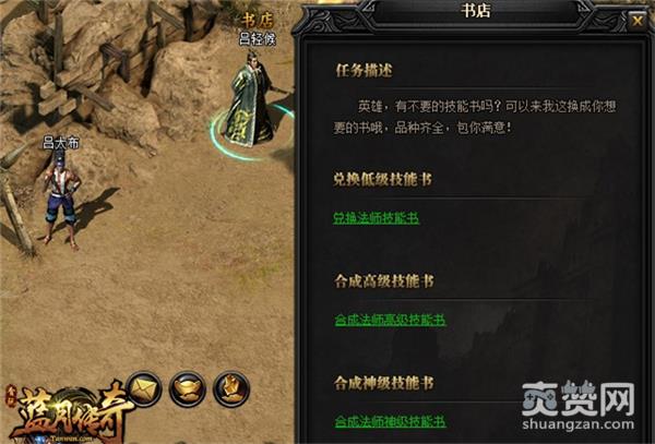 1、找到荒漠土城书店的书商“吕轻候”,然后点击【合成神级技能书】选项就能合成