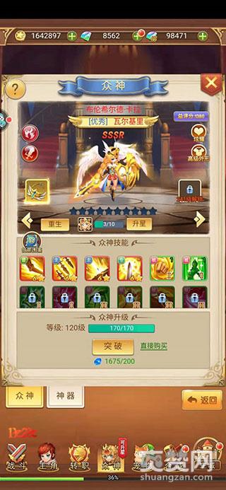 众神根据品质从低到高分为:SR、SSR、SSSR、UR、HUR。HUR品质的众神最强。